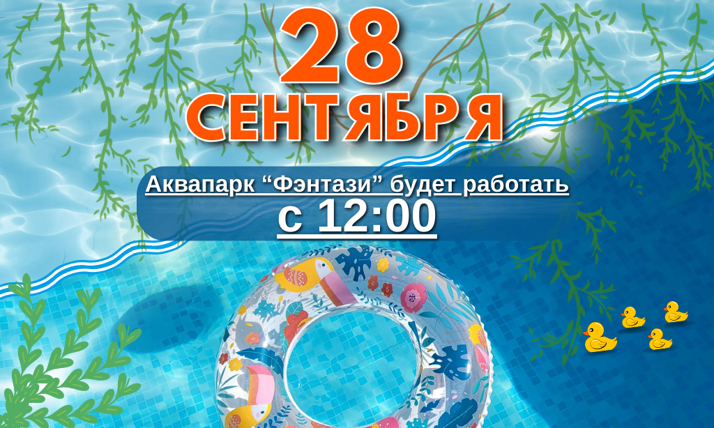 28 сентября (воскресенье) наш аквапарк начнет свою работу с 12:00.
