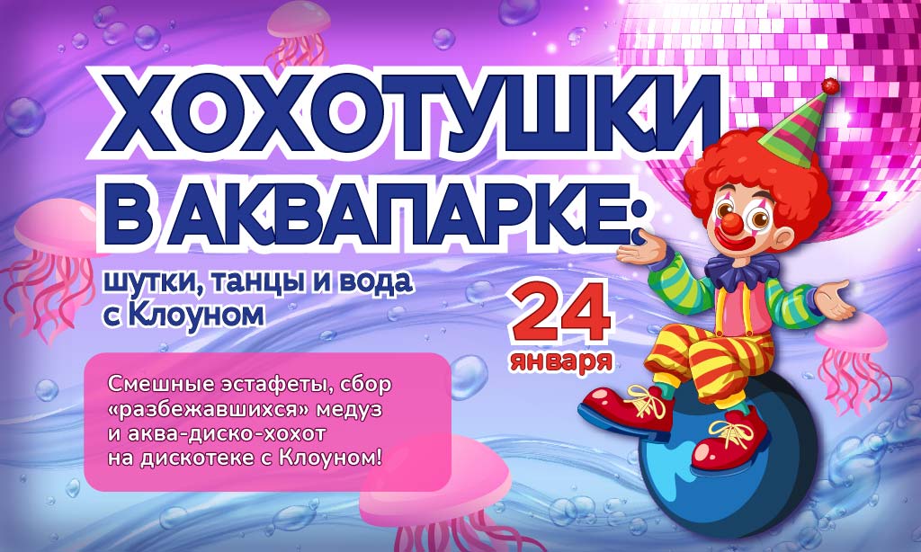 Хохотушки в аквапарке: шутки, танцы и вода с Клоуном!