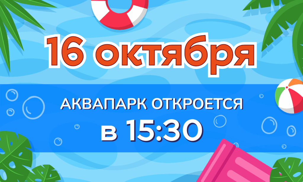 16 октября (четверг) наш аквапарк начнет свою работу с 15:30*.